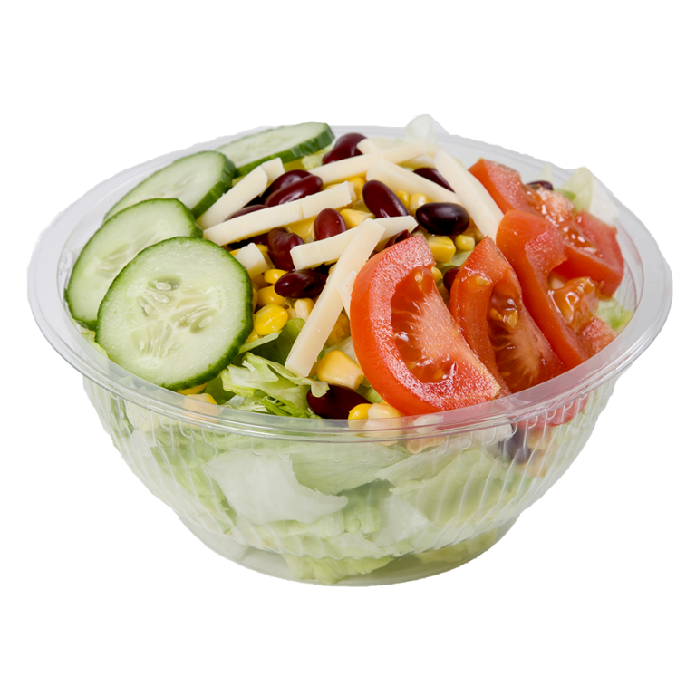 Eisbergsalat mit frischen Tomaten, Gurken, Mais, Kidney-Bohnen und Käse