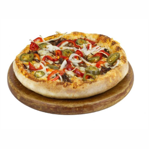 mit hausgemachtem Pulled Beef *), Chipotle Sauce, Zwiebeln, Jalapenos, rote Paprika und Käse